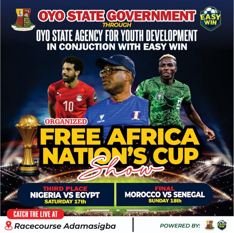 The Oyo State Government has announced the extension of its free public viewing of the 2025 Africa Cup of Nations (AFCON) matches, covering Saturday’s third-place encounter between Egypt and Nigeria, as well as Sunday’s grand finale between Senegal and Morocco.