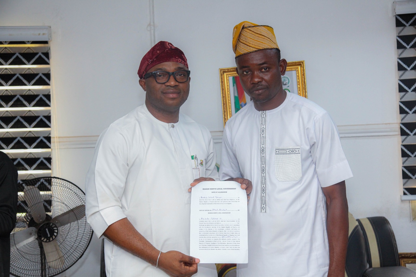 The Executive Chairman of Ibadan North Local Government, Hon. Oluwaseun Olufade, has formally sworn in Mr. Saheed Muritala as the newly appointed Special Assistant to the Chairman, reaffirming his administration’s commitment to loyalty, inclusiveness, and effective grassroots governance.