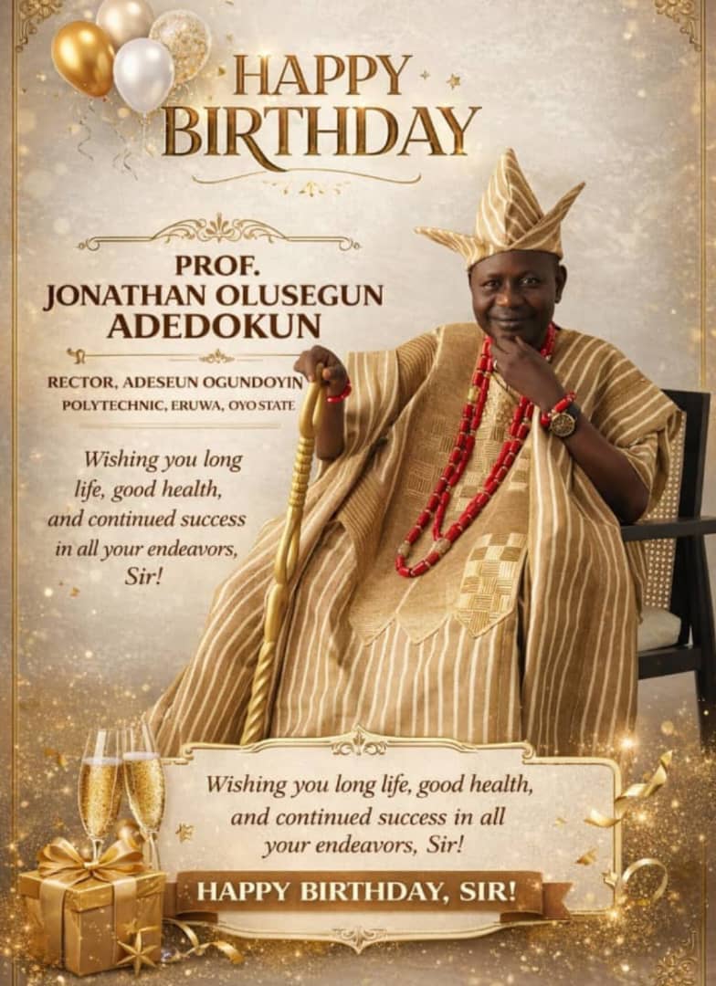 In his congratulatory message, Otunba Aridunu praised Prof. Adedokun for his visionary leadership and dedication to advancing education at the Polytechnic. He described the Rector as “an exemplary leader whose commitment to academic excellence continues to positively impact students, staff, and the wider educational community.” He further prayed for the Rector’s good health, wisdom, and continued success in all his endeavors.